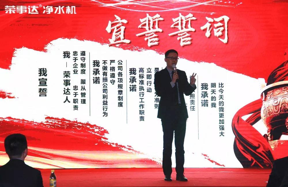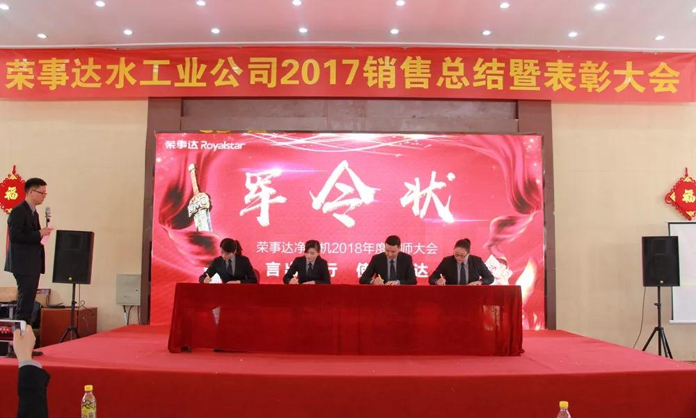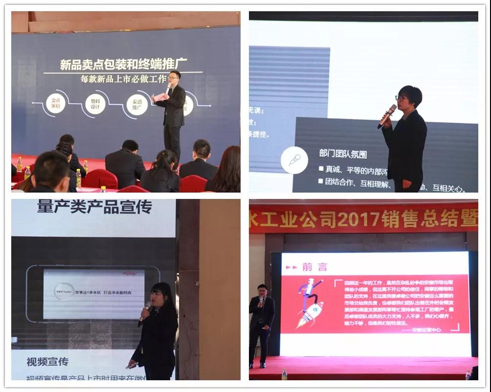 榮事達(dá)水工業(yè)公司總經(jīng)理王悅生作大會開場致辭。王總回顧了公司在2017年取得的傲人成果與輝煌業(yè)績,提出2018年戰(zhàn)略發(fā)展規(guī)劃和目標(biāo),并要求圍繞新目標(biāo),開好局,起好步,以實(shí)際行動(dòng)落實(shí)新規(guī)劃,謀求新發(fā)展,創(chuàng)造新輝煌。