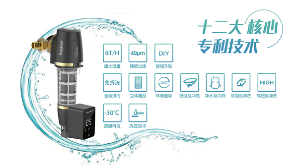 此次榮事達智能前置過濾器系列所帶來的最大不同,便是其獨有的“防堵免拆洗技術”。作為企業定向研發的專利技術,有效解決了前三代傳統前置過濾器“易堵塞,拆洗難”的致命弊病,五款新品從第四代到第五代再到第六代,可以說是防堵免拆洗技術的梯度升級。