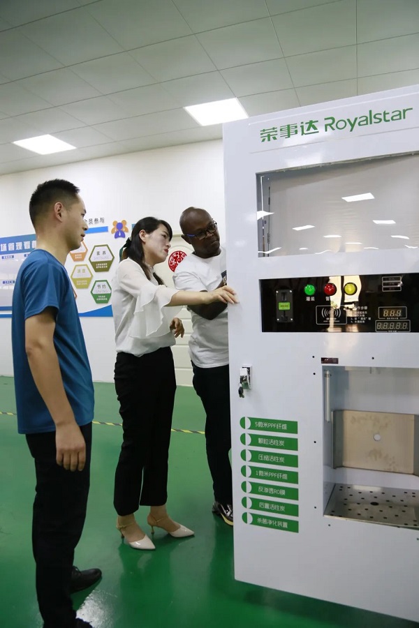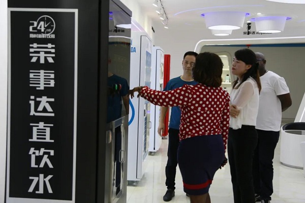 國際貿易負責人帶領客戶先后參觀了榮事達商用設備生產車間、榮事達智能家用凈水生產車間和智慧水世界展廳,了解榮事達企業綜合實力及十大水處理系統具體發展狀況。