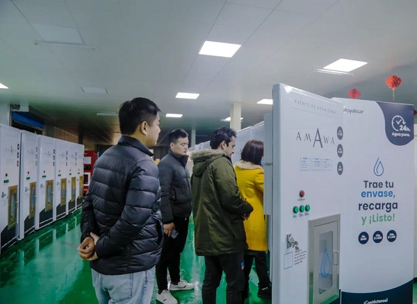 客戶先后參觀了智慧水世界展廳、榮事達商用設備生產車間、榮事達智能家用凈水生產車間,了解榮事達企業綜合實力及十大水處理系統具體發展狀況。