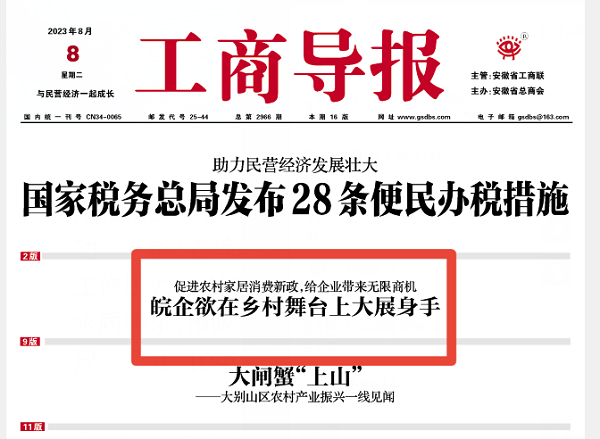 - 媒體聚焦|工商導(dǎo)報(bào)“皖企欲在鄉(xiāng)村舞臺(tái)上大展身手”