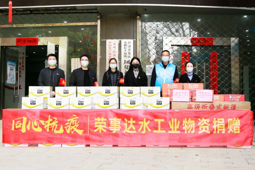 榮事達(dá)水工業(yè)集團(tuán)在得知這一消息后,第一時(shí)間聯(lián)合黨支部來(lái)到長(zhǎng)豐縣雙鳳開(kāi)發(fā)區(qū)鳳巢社區(qū)黨群服務(wù)中心,為防控一線人員送去帳篷、方便面、飲用水等生活所需物資。