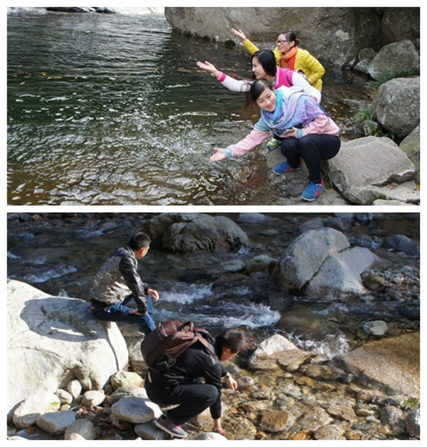 天堂寨山中飛瀑林立,山谷溪流縱橫交錯。榮事達訓練營隊員懷揣一顆敬畏自然、崇尚健康之心,逆流而上,觀瀑布之雄偉壯觀;順流而下,探碧潭之純粹清冽。