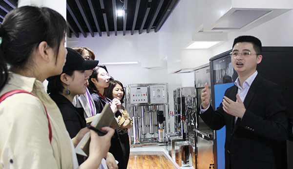 上午十點,欄目組人員到達位于長豐縣雙鳳開發區的榮事達第六工業園,并在榮事達水工業公司總經理王悅生等人的陪同下,先后參觀了榮事達雙創中心和榮事達智能家電研發中心。參觀過程中,欄目組成員對展廳及產品贊不絕口,認為榮事達的“雙創”中心不是簡單的、機械的資源平臺,而是一個良性的、符合企業成長規律的生態環境。