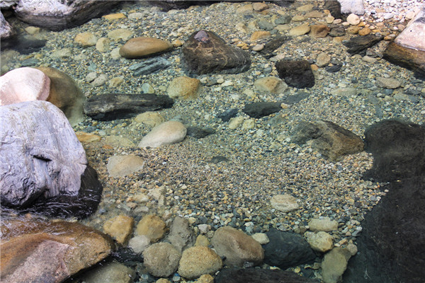 潭水青碧,峽谷幽深,怪石遍布,古木如蓋。這里的溪流清澈見底,仿佛伸手可及。小九寨溝的稱謂,名不虛傳。