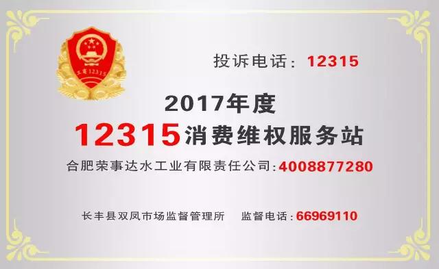 為了更好地貫徹中國(guó)消費(fèi)者協(xié)會(huì)消費(fèi)維權(quán)主題、切實(shí)保護(hù)消費(fèi)者合法權(quán)益,合肥市工商部門(mén)及12315指揮中心特授權(quán)榮事達(dá)水工業(yè)公司成為“12315消費(fèi)者維權(quán)服務(wù)站”、“12365質(zhì)量監(jiān)督服務(wù)站”,履行消費(fèi)者維權(quán)和質(zhì)量監(jiān)督服務(wù)工作。