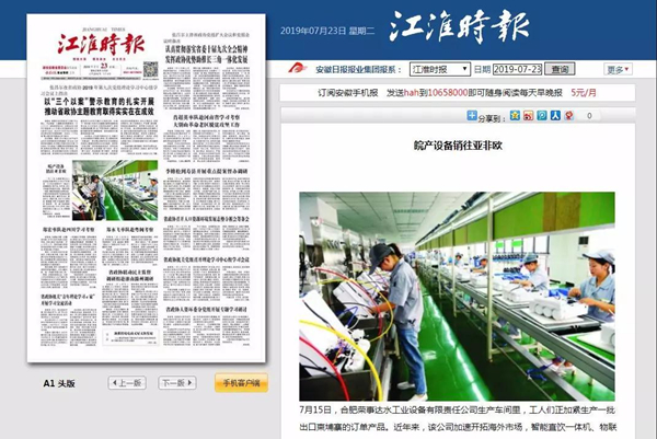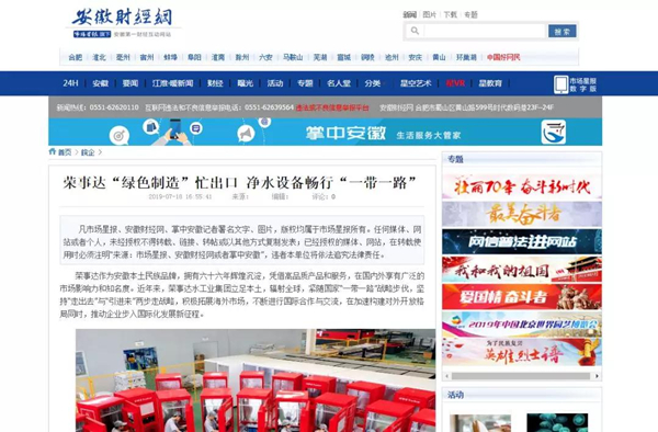 安徽財經網 《榮事達“綠色制造”忙出口  凈水設備暢行“一帶一路”》