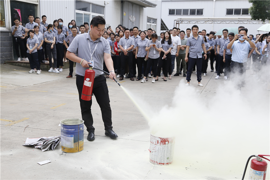 滅火演習現場,相關人員就消防器材使用規范,進行了詳細的講解與演練。在實操前先由消防指導員進行了滅火器的使用方法、 步驟和滅火姿勢等教學,然后安排員工現場實操滅火。集團各部門員工爭先拿起滅火器按照步驟進行實操滅火,反應熱烈。