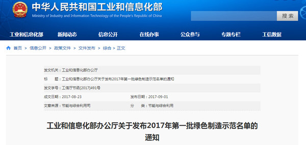 為貫徹落實(shí)《中國(guó)制造2025》,深入實(shí)施綠色制造工程,加快構(gòu)建綠色制造體系,率先打造一批綠色制造先進(jìn)典型,工信部確定了2017年第一批綠色制造示范...