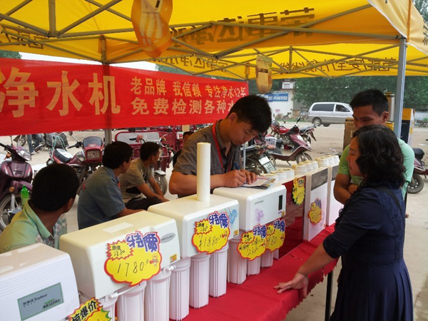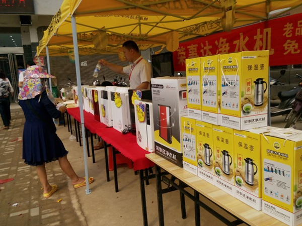 活動(dòng)期間,榮事達(dá)在甘岸鎮(zhèn)免費(fèi)檢測水質(zhì),借助TDS測試筆、水質(zhì)電解器等科學(xué)檢測儀器,居民可以了解水質(zhì)凈化前后的顯著區(qū)別。工作人員在現(xiàn)場準(zhǔn)備了做凈水實(shí)驗(yàn)的演示機(jī)器,居民可以觀看整個(gè)凈水過程。通過凈水演示及產(chǎn)品講解,居民對(duì)榮事達(dá)純水機(jī)、管線機(jī)、凈水器等產(chǎn)品有了一定了解,對(duì)產(chǎn)品使用功能產(chǎn)生了濃厚的興趣。在此次活動(dòng)中,榮事達(dá)還專門推出了免費(fèi)試用凈水機(jī)的服務(wù),讓當(dāng)?shù)鼐用裣润w驗(yàn)產(chǎn)品,使用滿意后再購買,以便當(dāng)?shù)叵M(fèi)者買得放心、用得順心。此外,顧客在活動(dòng)當(dāng)天購買凈水機(jī)還可獲贈(zèng)精美禮品。