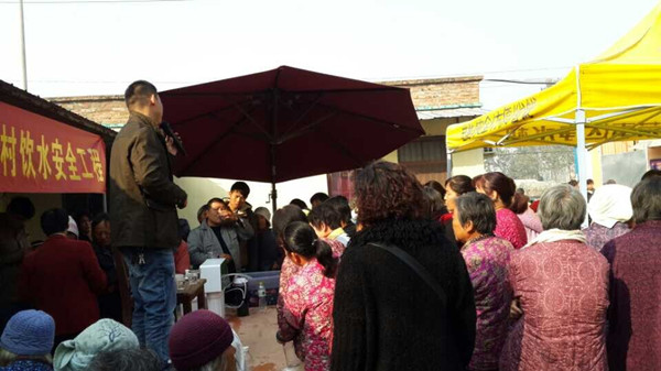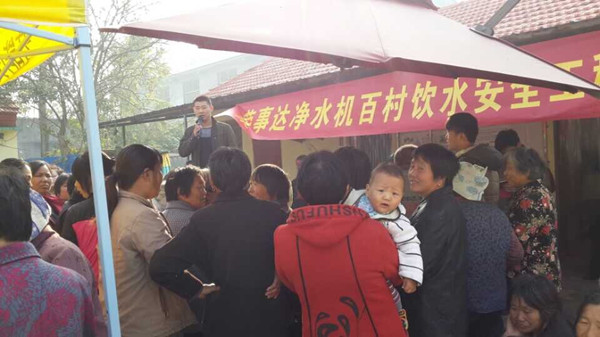 此次活動受到豐縣廣大村民的熱烈歡迎,見到了產(chǎn)品功效,嘗到甘甜的純凈水,許多村民現(xiàn)場即預(yù)訂了產(chǎn)品。短短十多天,當?shù)卮砩桃褳?00多戶村民家庭安裝凈水機,接上了安全水。