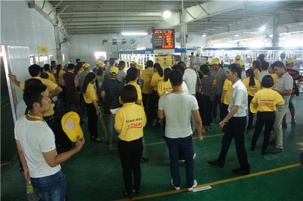 14日下午,渠道開發(fā)部張總給與會(huì)學(xué)員作了企業(yè)文化講座,介紹了品牌發(fā)展歷史及公司研發(fā)、生產(chǎn)、銷售、服務(wù)等方面的發(fā)展現(xiàn)狀,并展示了公司取得的榮譽(yù)資質(zhì)以及積極踐行的公益活動(dòng)。之后,在渠道開發(fā)部王部長等一行工作人員的帶領(lǐng)下,廣大學(xué)員對(duì)生產(chǎn)園區(qū)進(jìn)行實(shí)地考察,見證公司規(guī)模實(shí)力。學(xué)員們?cè)趶S房體驗(yàn)了先進(jìn)生產(chǎn)環(huán)境,通過參觀生產(chǎn)線、檢測線、包裝區(qū),切身感受榮事達(dá)生產(chǎn)、檢測產(chǎn)品的嚴(yán)格規(guī)程和標(biāo)準(zhǔn),了解榮事達(dá)臻于細(xì)節(jié)的產(chǎn)品包裝措施。