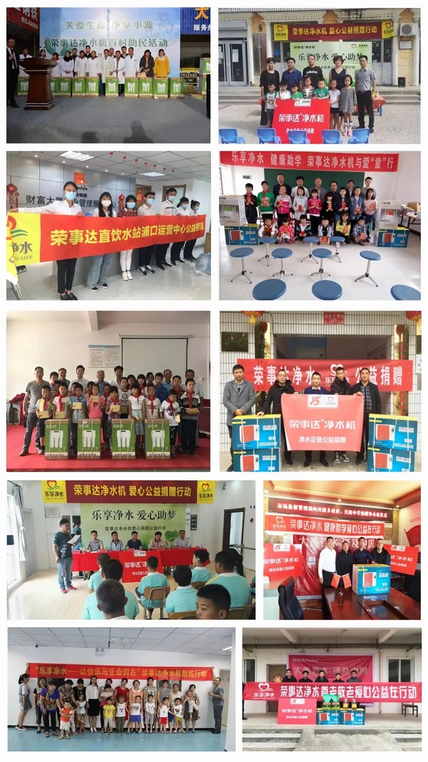 03 榮事達(dá)水工業(yè)經(jīng)銷商積極響應(yīng)集團(tuán)公益倡議,熱衷于健康助學(xué)、愛心敬老、愛心助殘、疫情防控等多種形式的公益行動(dòng),截止到目前,經(jīng)銷商們的公益活動(dòng)已遍及安徽、南京、湖南、江蘇、陜西、江西、河南、河北等多個(gè)地區(qū),以健康好水,溫暖每一個(gè)城市。