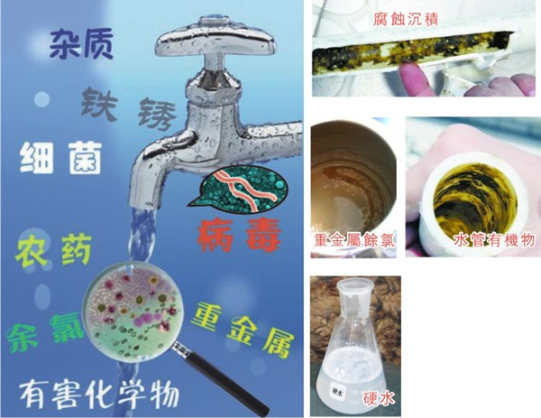 我國的自來水與世界相比屬于極低標(biāo)準(zhǔn)水,即使部分達(dá)標(biāo)的自來水在輸水管網(wǎng)、高樓水塔中也會(huì)造成二次污染而不達(dá)標(biāo)。我國目前水廠只能對物理污染和微生物污染進(jìn)行凈化處理,而無法對化學(xué)污染,諸如農(nóng)藥、殺蟲劑、合成洗滌劑、重金屬、各種有機(jī)物、無機(jī)化合物及其他有害毒素進(jìn)行處理。因此,僅把水煮沸、燒開并不是完全安全的。